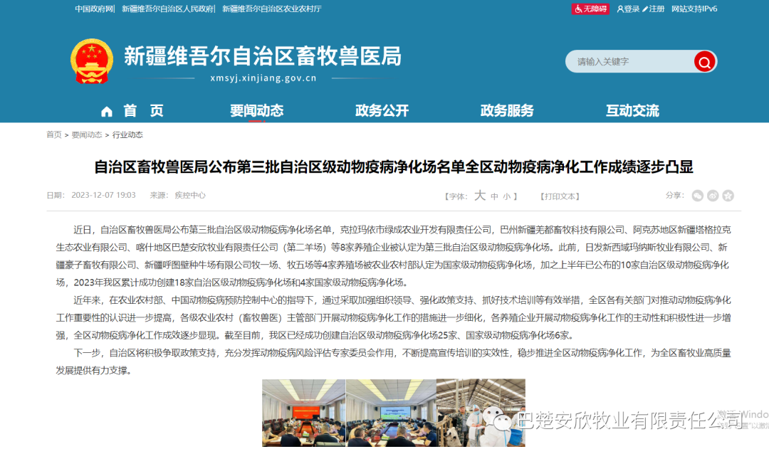 鵬欣集團旗下巴楚安欣獲評自治區級動物疫病凈化場-上海鵬欣(集團)有限公司